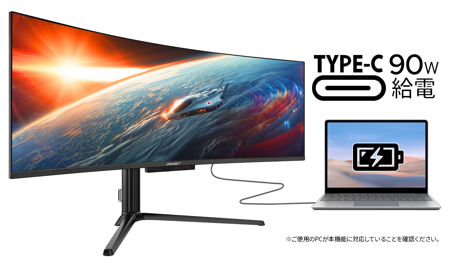 PC本体への最大90W給電とモニターへの映像出力が可能です。