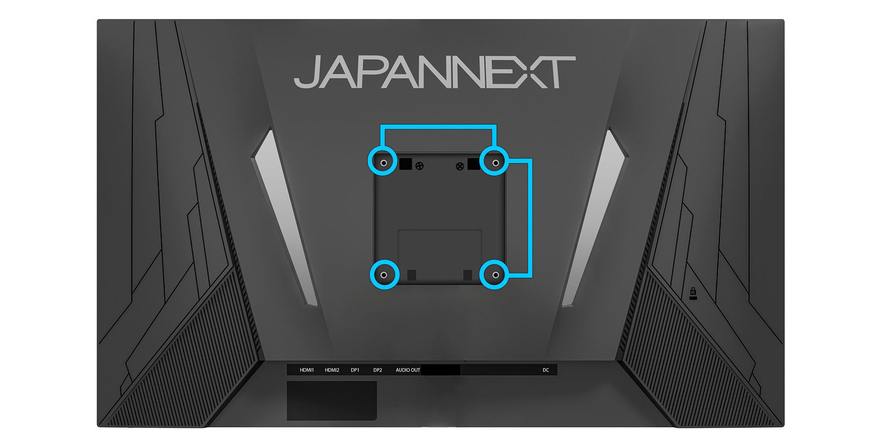 100x100mmのVESAマウントに対応しているので別売のモニターアームやモニタースタンドなどへの取り付けが可能です。
