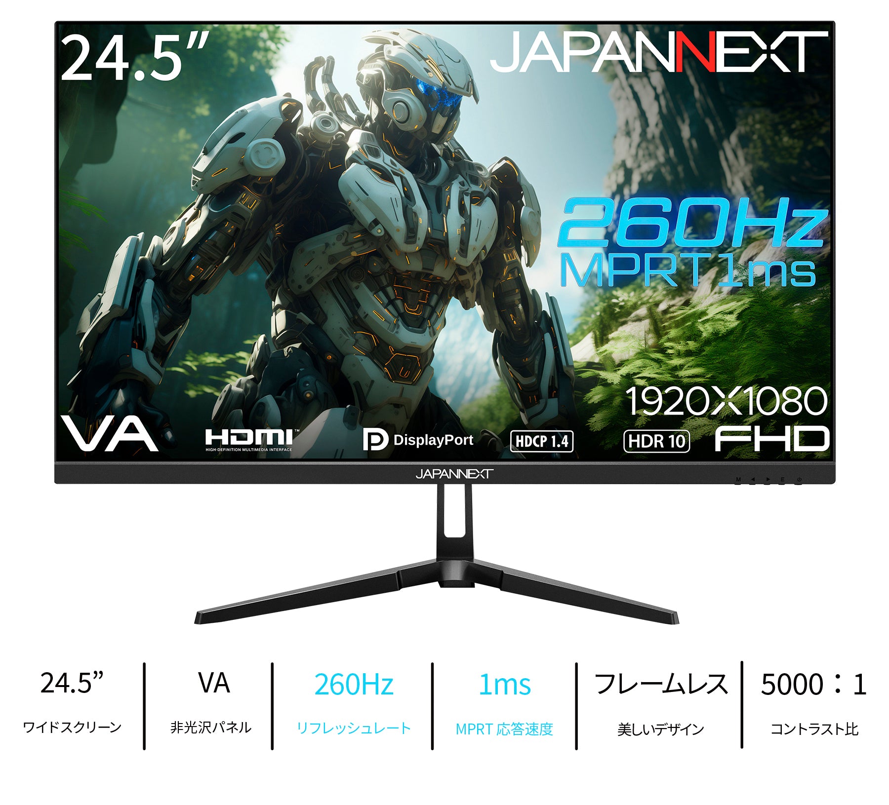 24.5” VAパネル 260Hz対応ゲーミングモニター