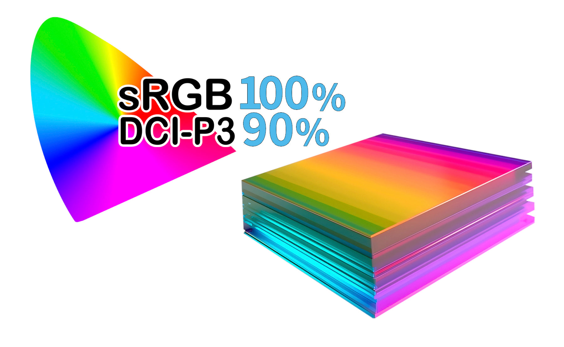 10.7億色表示 sRGB:100% DCI-P3:90%