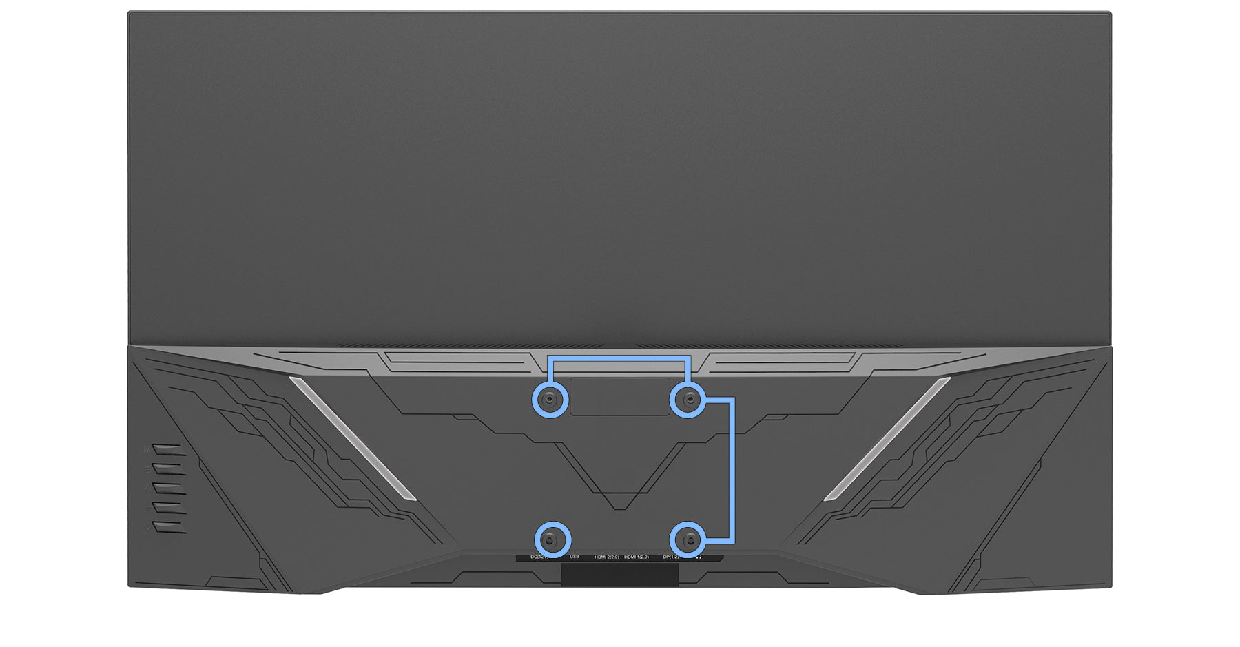 100mmx100mmのVESAマウントに対応、別売のモニターアームやモニタースタンドへの取り付けが可能です。
