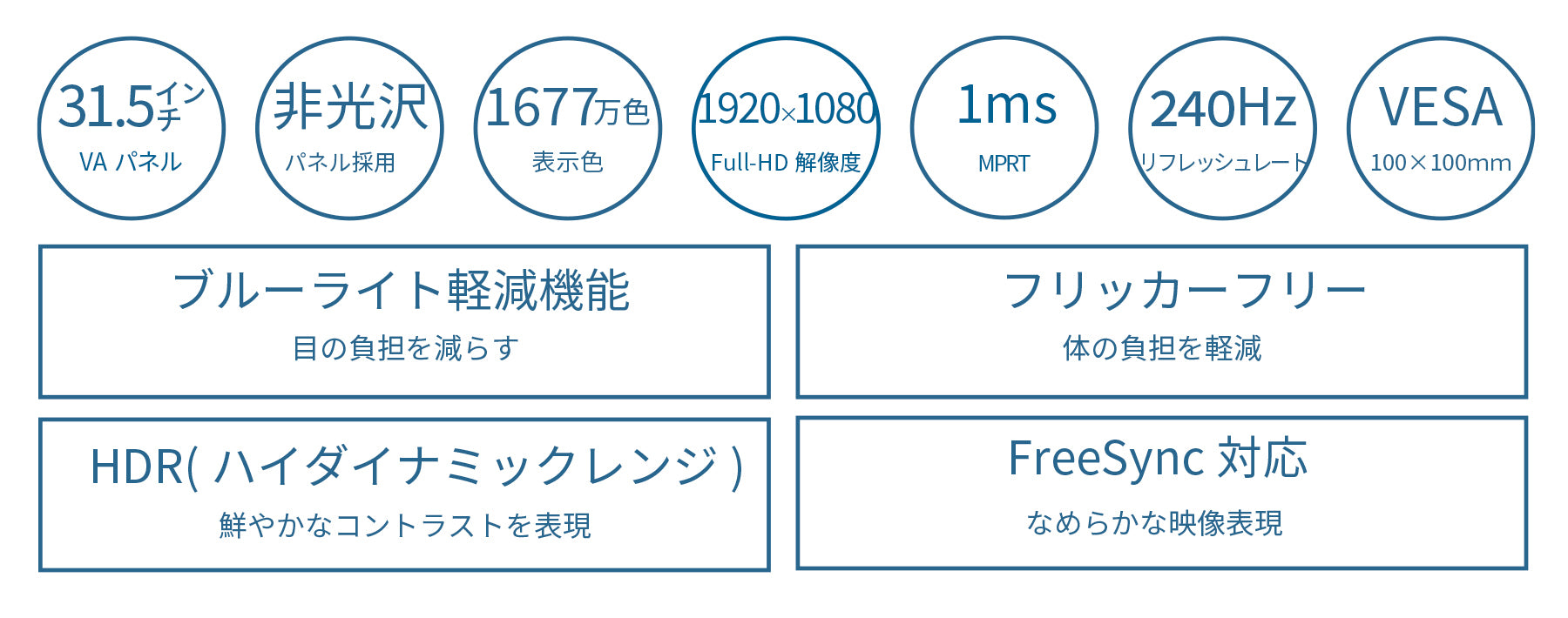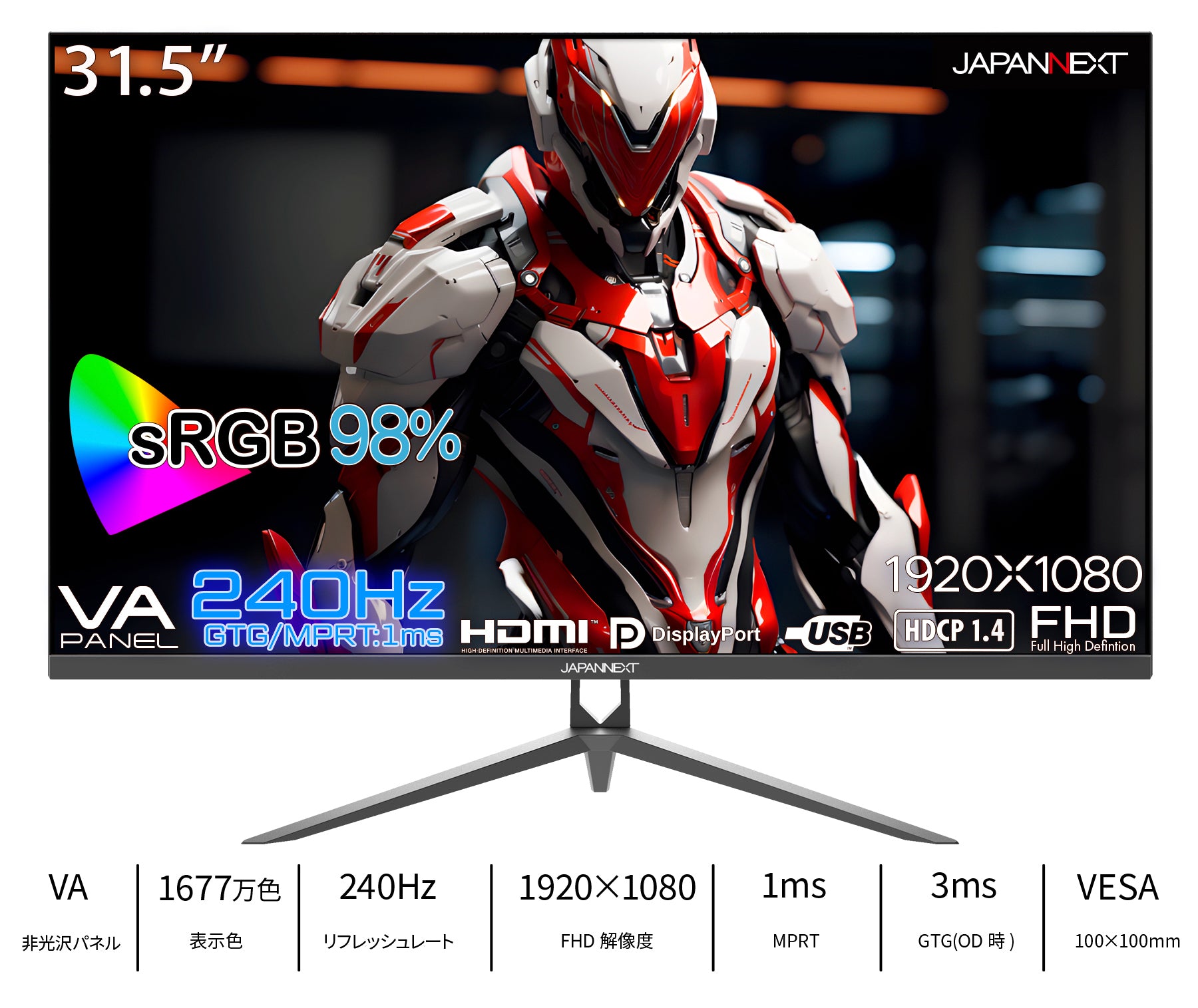 31.5インチのフルHD(1920x1080)VAパネルを搭載、240Hzのリフレッシュレート、