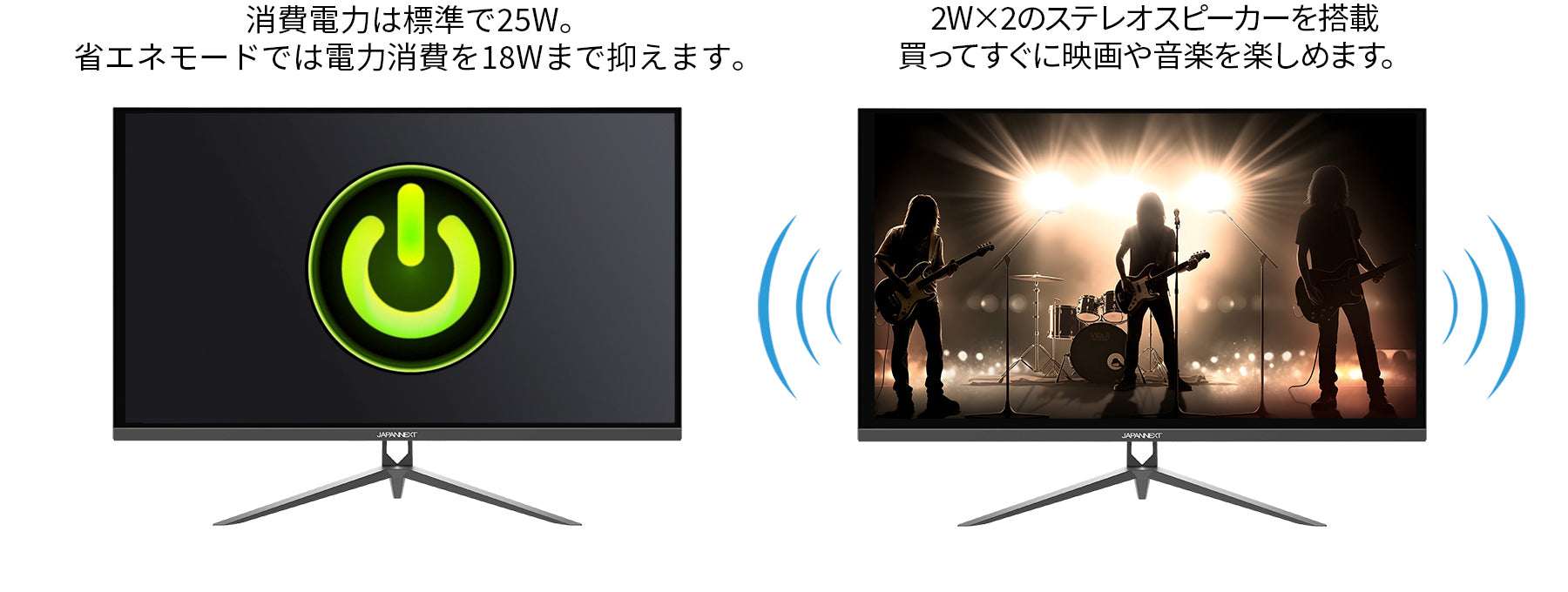 映像入力端子はHDMI2.0 x2(240Hz対応)、DisplayPort1.4 x1(240Hz対応)を搭載、2W x2のスピーカーを内蔵します。フルHD解像度でPS5との120Hz接続に対応、ゲーミングPCだけでなくコンソールゲームでも高いリフレッシュレートでのゲームプレイが可能です。