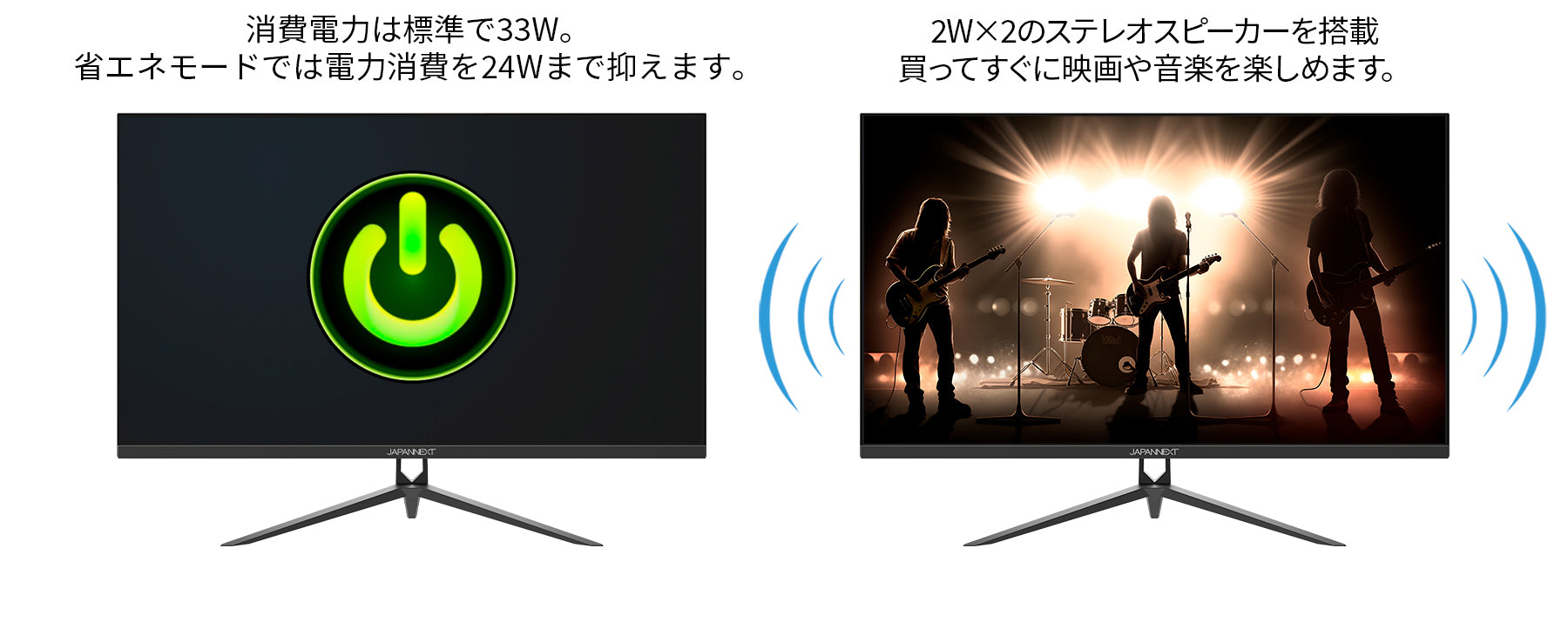 高画質VAパネルを採用、3000:1の高コントラスト比は、より黒をくっきりと表現をすることが可能、写真や動画を色鮮やかに映し出します。最大輝度300cd/m2の液晶パネルはsRGB:99%の広色域に対応し動画や写真も色鮮やかに美しく表示します。
