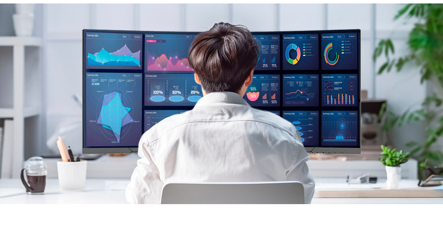 湾曲率R1500のウルトラワイド曲面スクリーンが圧倒的な生産性を実現します。