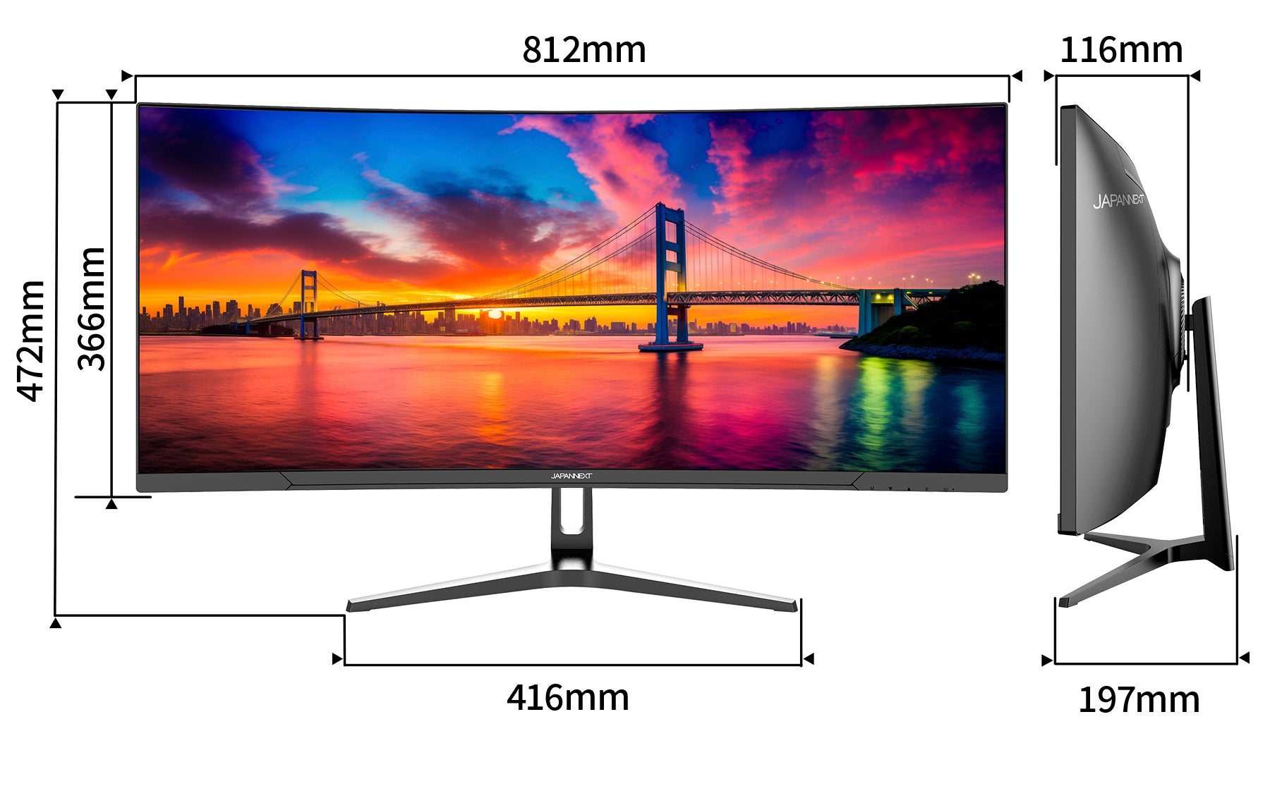 大画面34インチVAパネルを搭載した曲面(R1500)でUWQHD(3440x1440)解像度の湾曲液晶モニターです。UWQHD(3440x1440)解像度はフルHDの約2.4倍の高解像度を実現、水平解像度はフルHDより80%広く、高い生産性を実現できます。