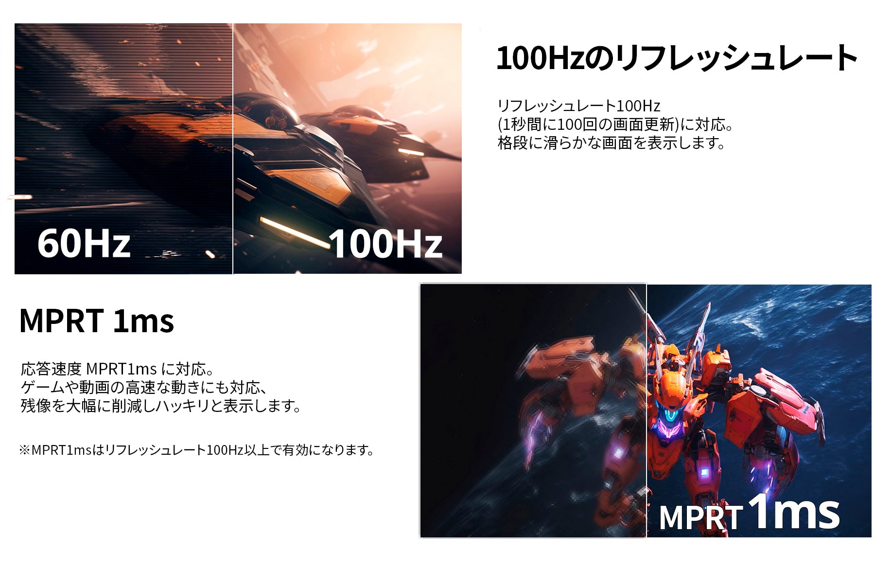 AdaptiveSync(FreeSync)テクノロジーはゲームプレイにおいて重要なフレームを安定させて、 どんなフレームレートでもなめらかなアーチファクトフリー性能を実現します。 ※AdaptiveSync(FreeSync)からG-Syncへの互換性があります。  (一部の機種を除きます。)