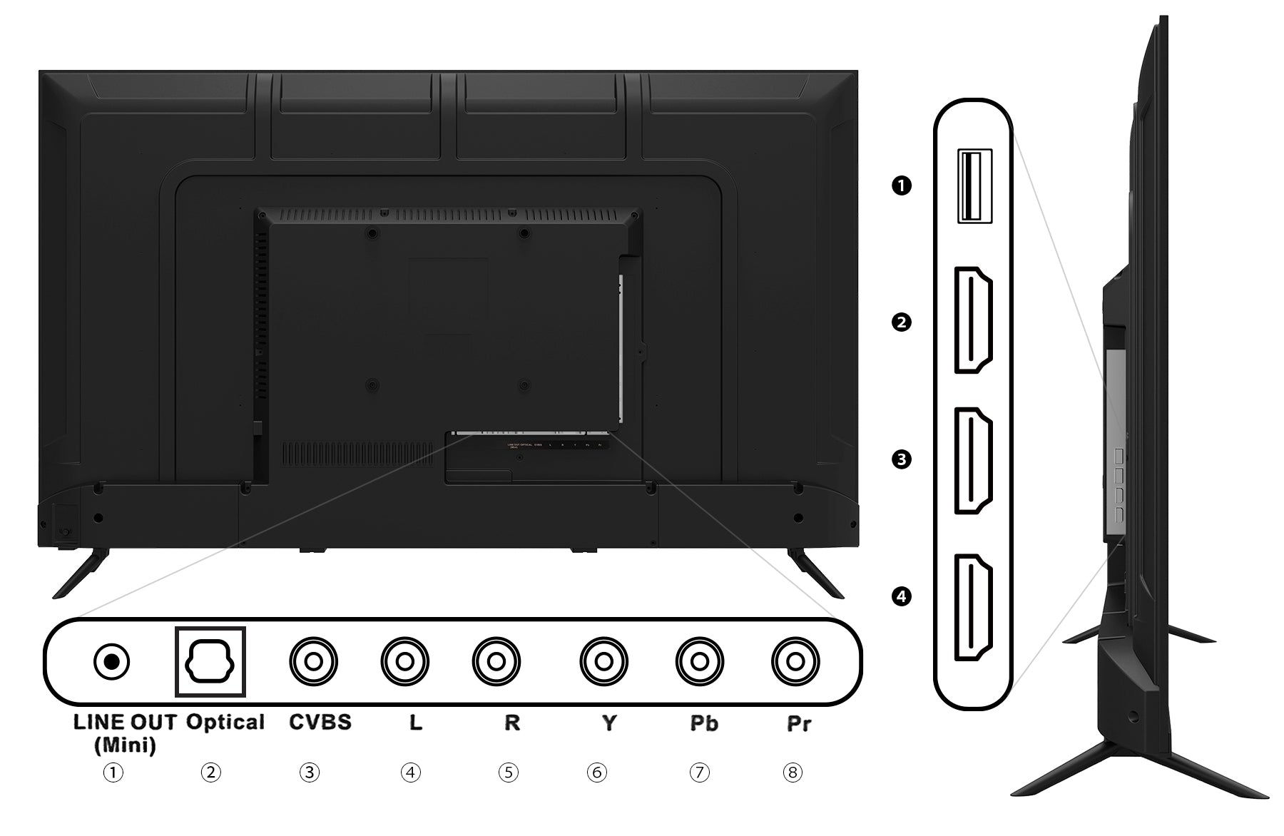 ❶USB-A:2.0 (デジタルサイネージとして使用できます。)
