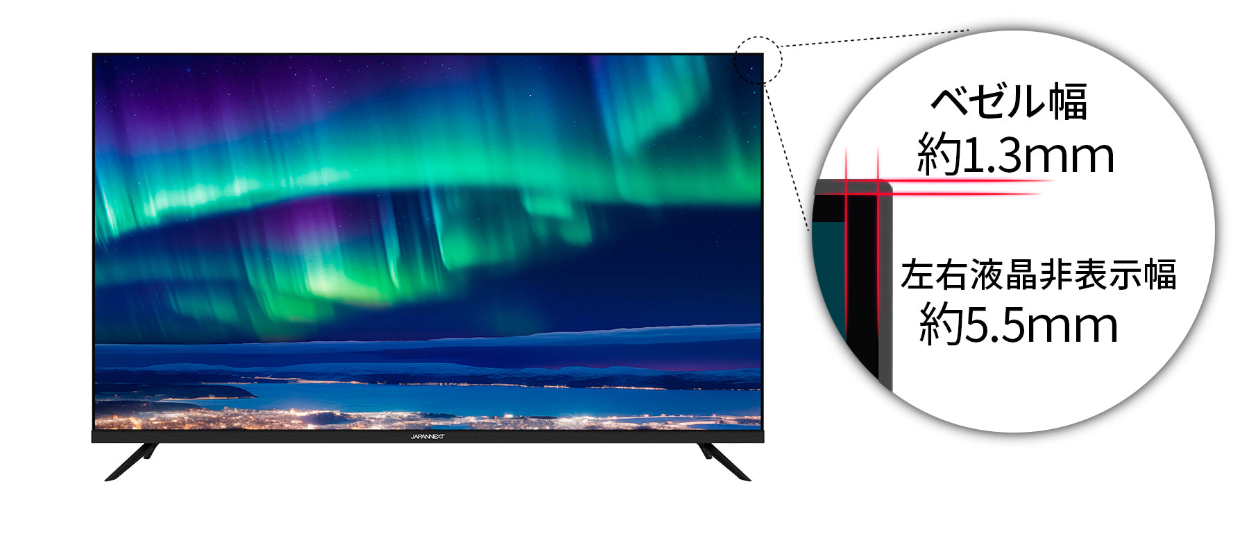 大型ながらベゼル幅はわずか1.3mm 液晶非表示幅は5.5mm。