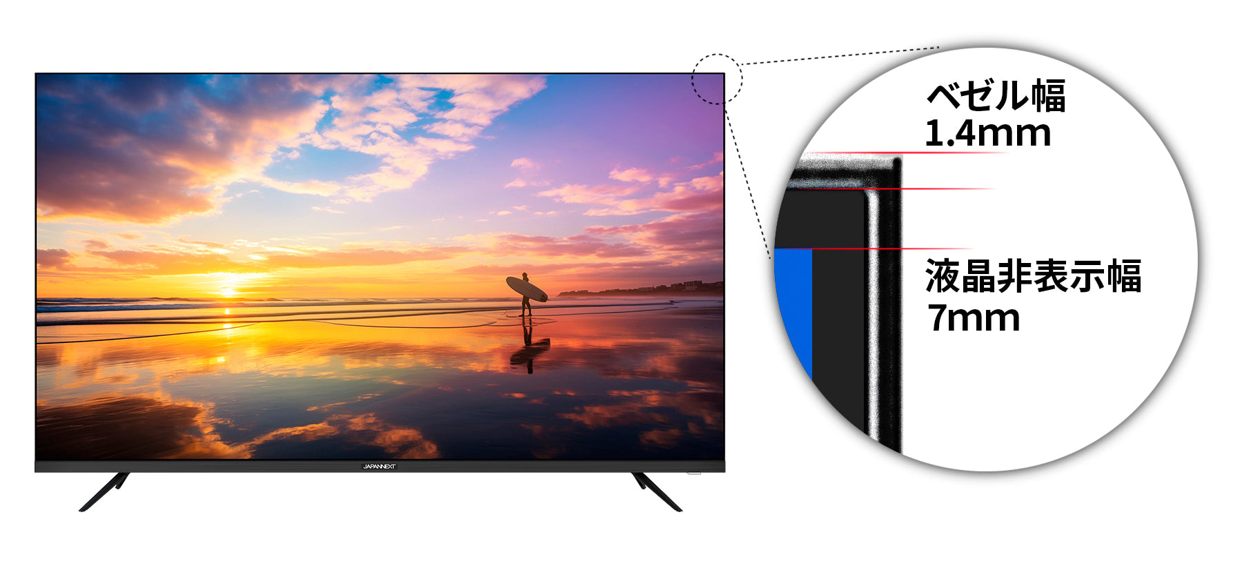大型ながらベゼル幅はわずか1.4mm 液晶非表示幅は7mm。