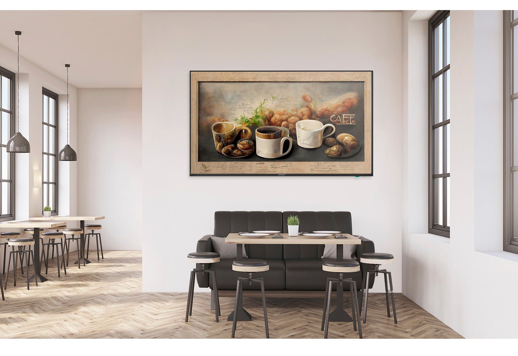 インターフェイスはHDMI2.0x3, ビデオ/音声入力端子x1, コンポーネント入力x1, オプティカル端子x1を搭載。パソコンのみならず、ブルーレイディスクプレーヤー、家庭用ゲーム機、デジタルビデオカメラなどを1本のケーブルで接続できます。 さらにUSBポートを搭載していますので、デジタルサイネージとしてもご利用できます(屋内使用のみ)。