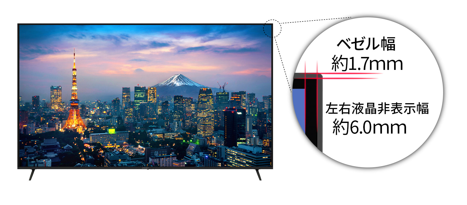 大型ながらベゼル幅はわずか1.7mm 液晶非表示幅は6mm。