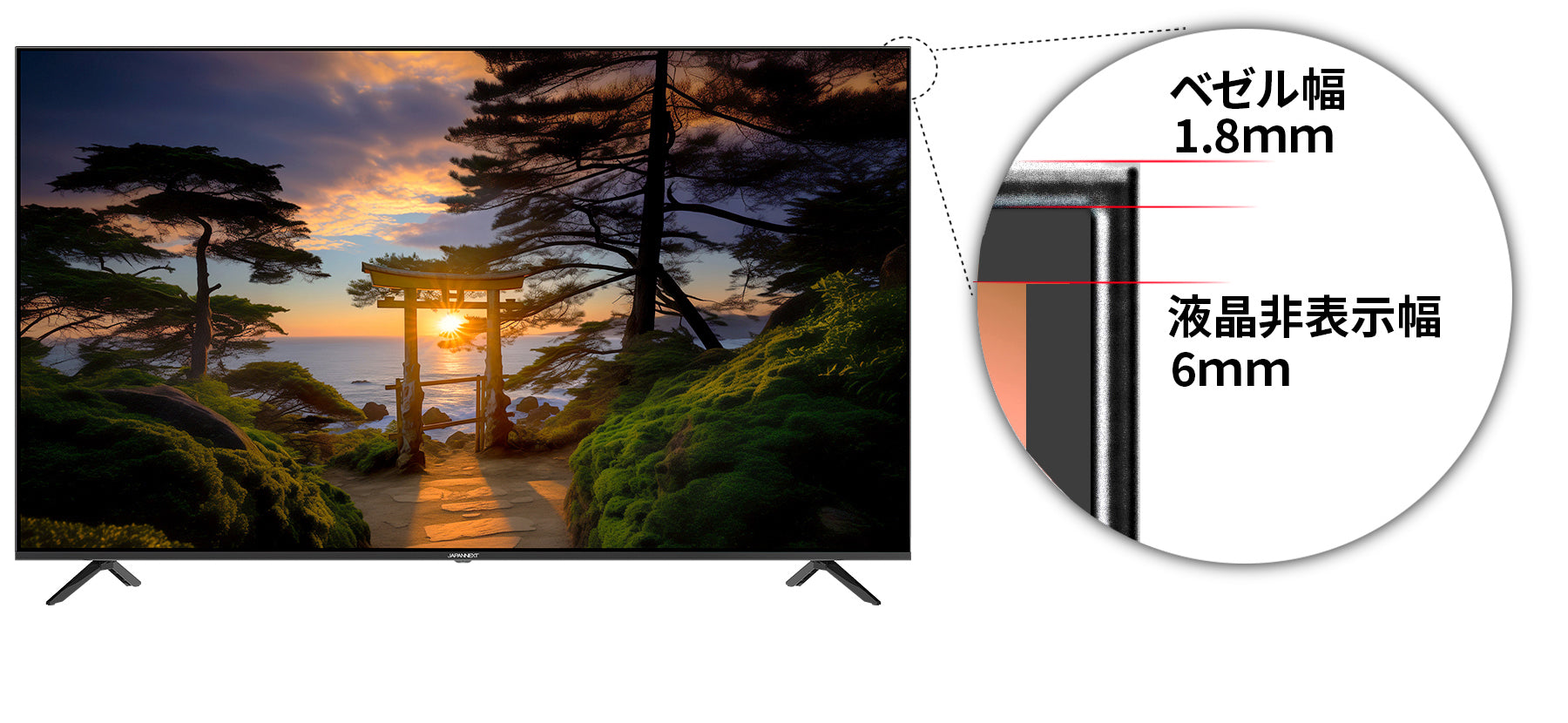 大型ながらベゼル幅はわずか1.8mm 液晶非表示幅は6mm。