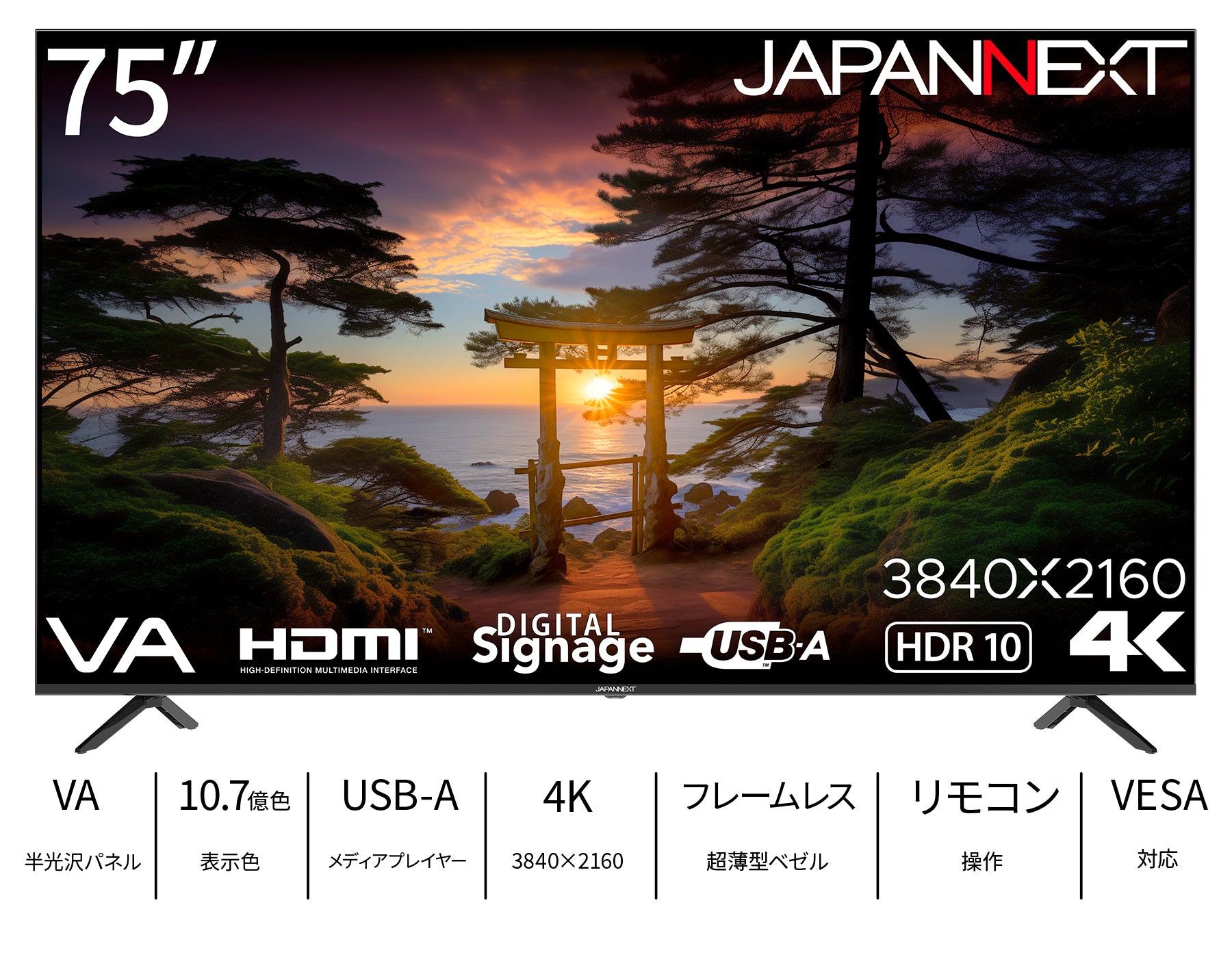 75インチの大画面でVAパネルを搭載し、4K(3840x2160)解像度に対応した大型液晶モニターとなります。