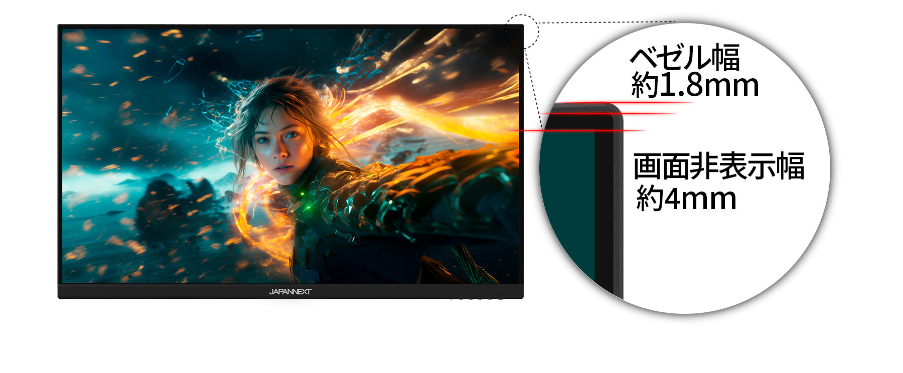 本製品はフルHD解像度に対応した液晶モニターです。 作業領域は1920×1080ドットの解像度です。
