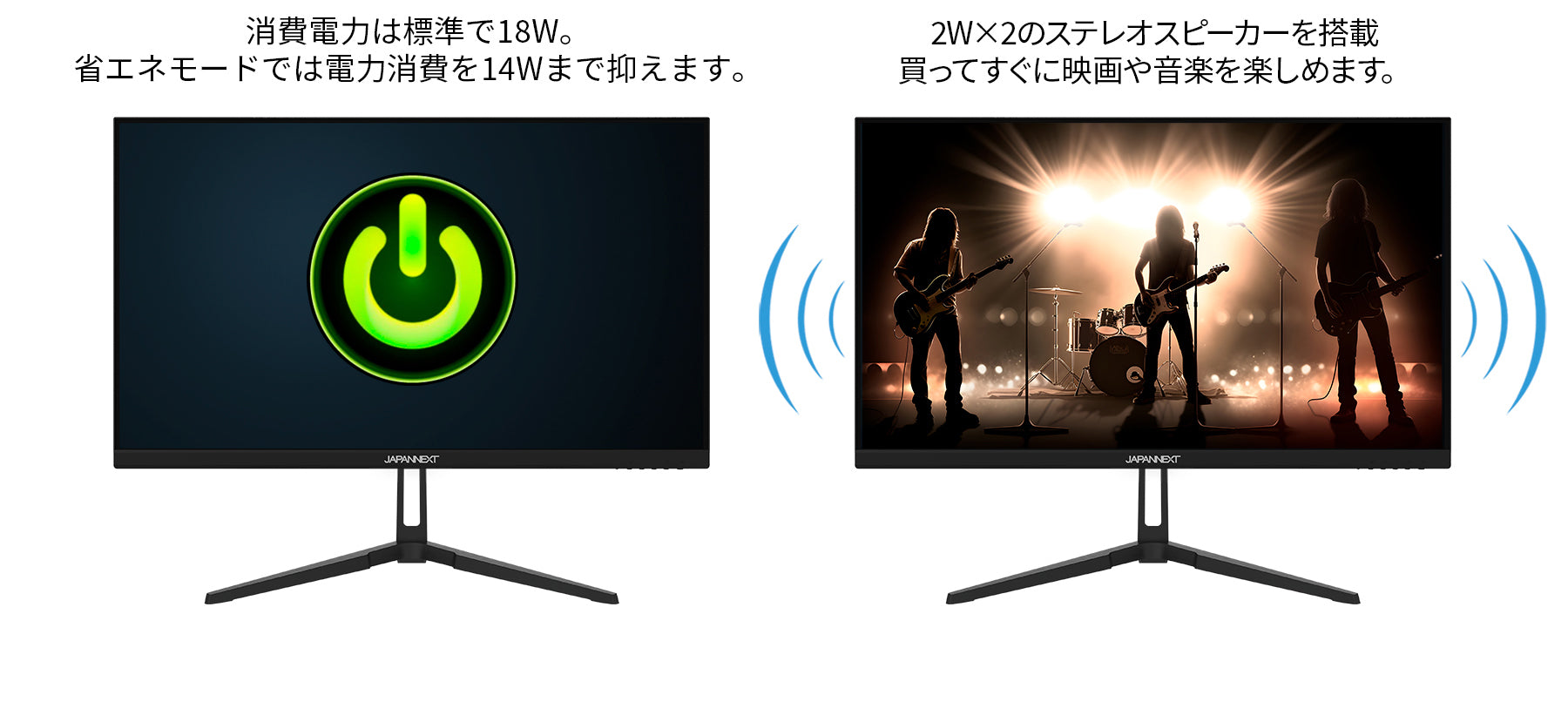 100x100mmのVESAマウントに対応しているので別売のモニターアームやモニタースタンドなどへの取り付けが可能です。2Wx2のスピーカーを内蔵しています。