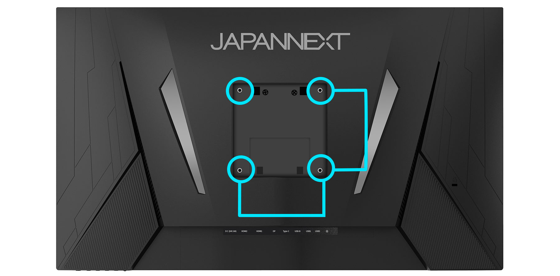 同梱されるVESAマウント延長スペーサーを使用して、アームや壁掛け金物を取り付けることができます。